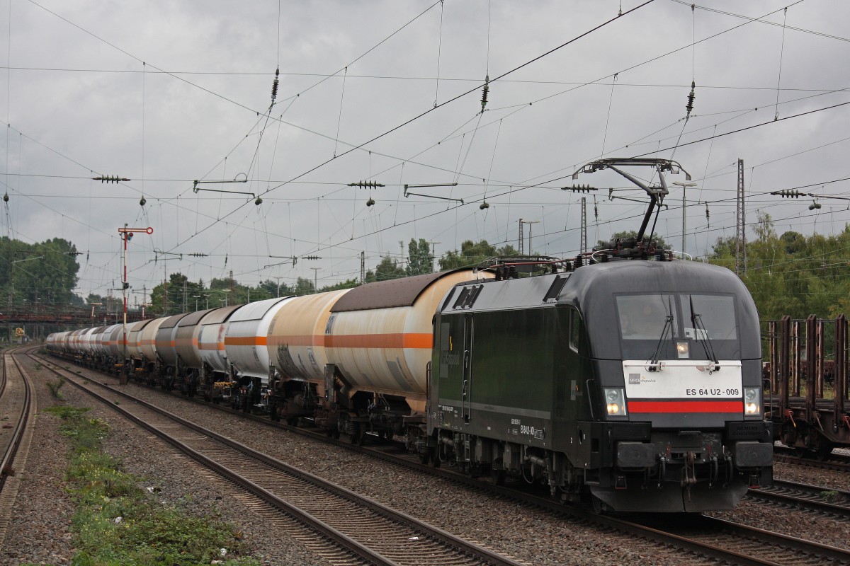 MRCE Dispolok ES 64 U2-009 zog am 10.9.13 für die IGE einen Gaskesselzug von Oberhausen-West nach Münchsmünster durch Düsseldorf-Rath.