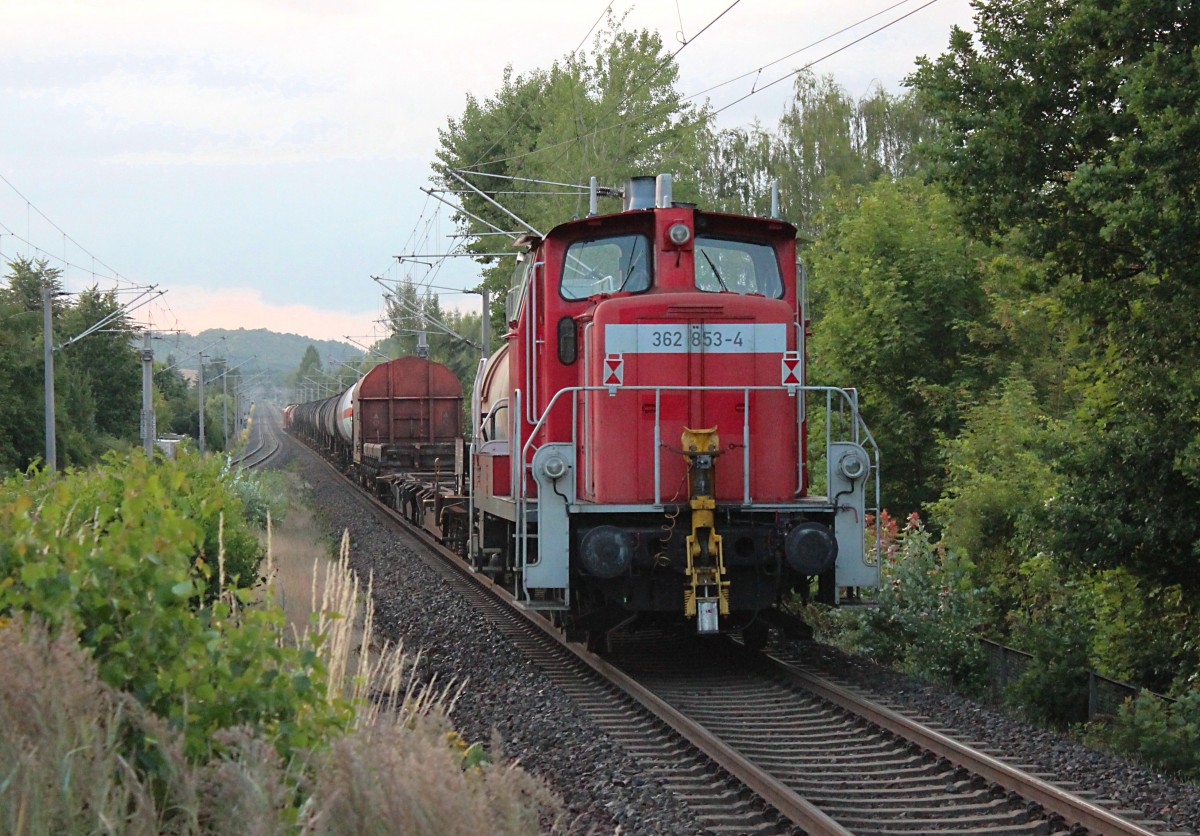 Nachschuß auf die 362 853-4 die am Umleiter von Leipizg-Engelsdorf nach Dresden mitgeschleppt wird. Zuglok ist die 155 117-5. 30.06.2014