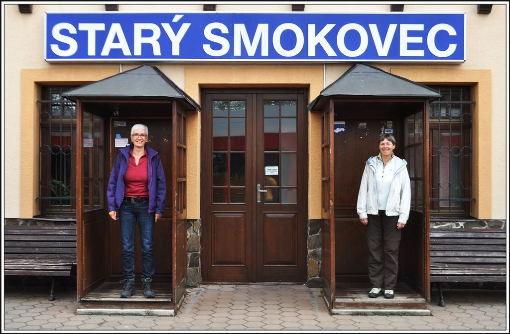Noch zwei Gesichter in Starý Smokovec. Wachhäuschen, Regenunterstand, Telefonkabine oder Fotorahmen, ich weiss es nicht, aber als Fotosujet perfekt geeignet ist der Bahnhof von Starý Smokovec/Altschmecks. (03.06.2014)
