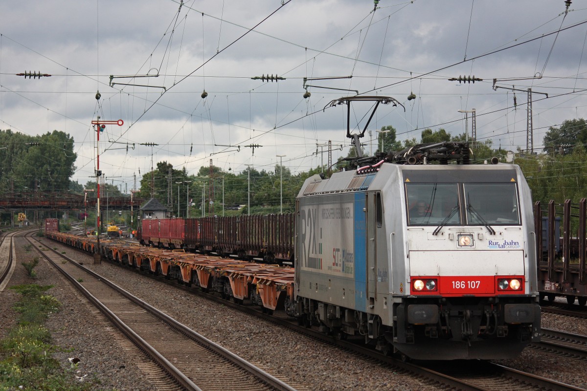 Railpool/RTB Cargo 186 107 am 10.9.13 mit einem KLV in Düsseldorf-Rath.
