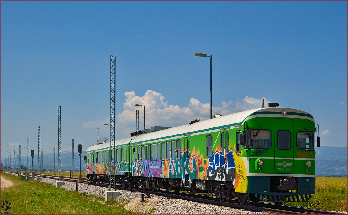 SŽ 711-007 fährt durch Cirkovce-Polje Richtung Murska Sobota. /10.6.2014