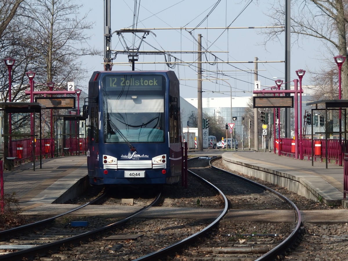 TW 4044 AM 14.3.14 unterwegs als Linie 12 nach Zollstock aufgenommen in der Haltestelle "Niehl". (Bild mit Zoom vom öffentlich zugänglichen Bereich gemacht)