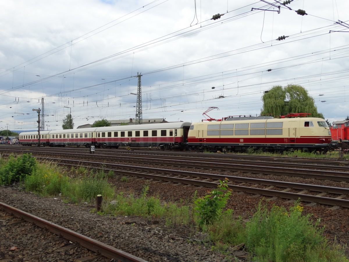 103 226-7 mit drei TEE Wagen am 14.06.14 in Koblenz Lützel von einen Öffentlichen Fotopunkt aus Fotografiert