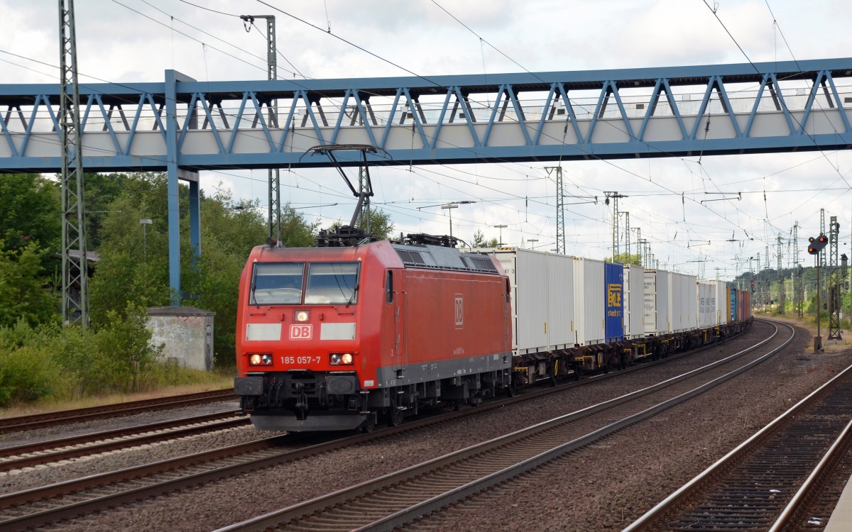 185 057 rollte mit einem Containerzug am 01.07.14 durch Buchholz(Nordheide) Richtung Hamburg.