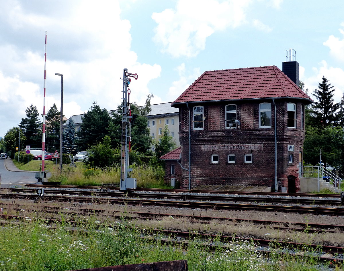 Das Stellwerk unweit des "Bahnhofes" Niedersachswerfen an der Strecke Nordhausen - Ellrich 11.07.2014