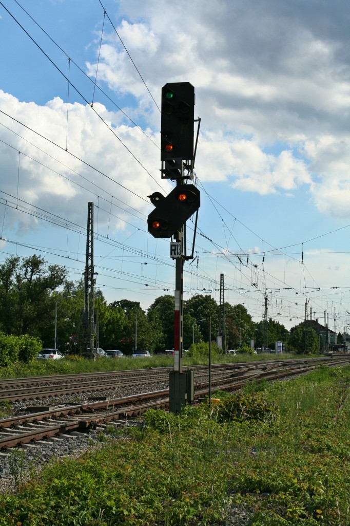 Die Zwischensignale des Bahnhofs Müllheim (Baden) R2 und R13, aufgenommen am 14.05.14.