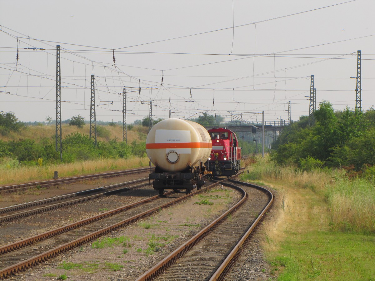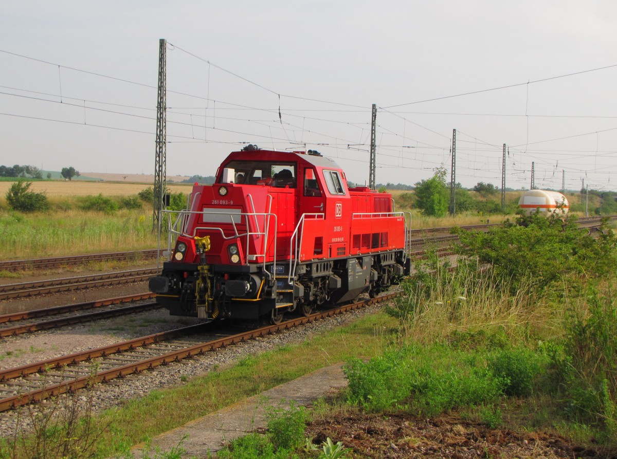 DB 261 093-9 am 11.07.2014 beim umsetzen in Großrudestedt. Sie holte einen Gaskesselwagen bei der Firma Lange GmbH und brachte ihn anschließend nach Erfurt Gbf.