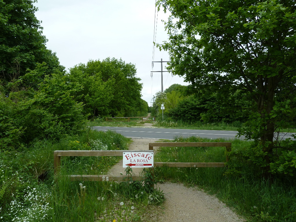 Bahnübergang über die nicht mehr genutzten Gleise des Bahnhofes Niedersachswerfen. Aufnahme entstand von der Leipziger Straße aus. 11.07.2014