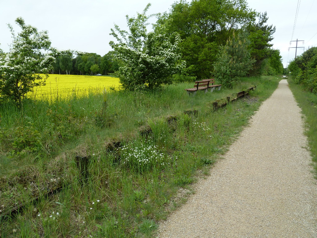 Ehemaliger Haltepunkt Vögelsen auf der stillgelegten Strecke Lüneburg–Buchholz (Personenverkehr 1981, Güterverkehr 1994 eingestellt), Blickrichtung zum Bahnübergang Vögelsen. Heute ist auf der Strecke ein ausgebauter Radweg von der Landwehr über Vögelsen nach Mechtersen. Fotografiert von meinem Bruder Simon Rieß.