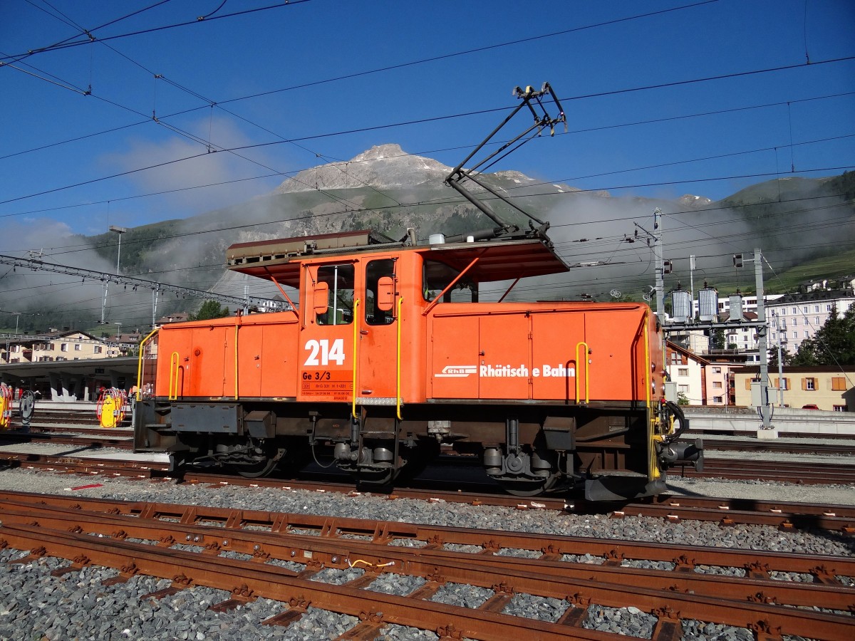 Im Bf. Samedan, die Rangiertraktor Ge 3/3 214 wartet ihre next einsatz, 26-06-2014