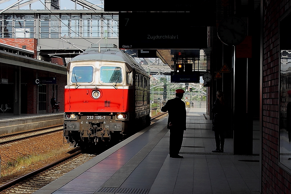 Die Ludmilla 232 105-7 der East-Western Railway dieselt am 16.05.2014 durch Berlin Gesundbrunnen.