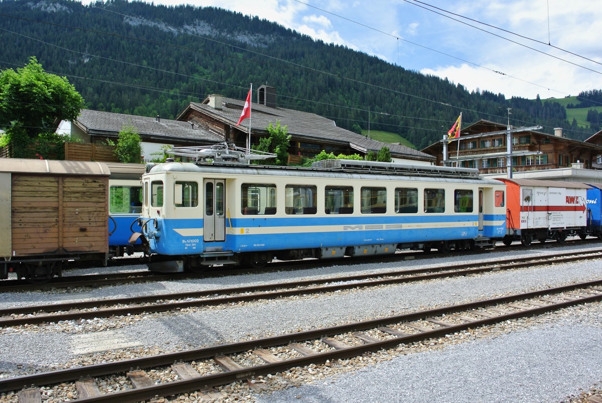 MOB Ast 117, As 102 Ars 101 und GDe 4/4 6005 als Train de Chocolat in Bulle, 01.07.2014.