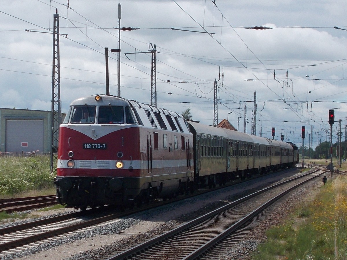 Nur am 14.Juni 2014 gab 118 770 ein kurzes Gastspiel auf Rügen,als Sie zusammen mit der PRESS 01 0509 und den Sonderzug Leipzig-Putbus in Bergen/Rügen eintraf.