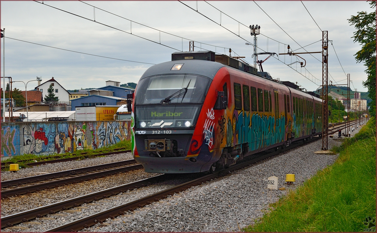 SŽ 312-103 fährt durch Maribor-Tabor Richtung Zidani Most. /13.6.2014