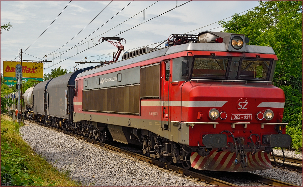SŽ 363-031 zieht Güterzug durch Maribor-Tabor Richtung Norden. /16.6.2014