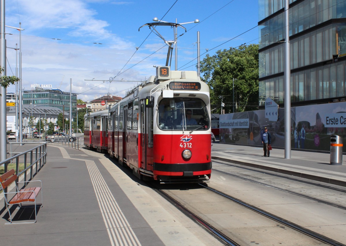 Wien Wiener Linien SL 18 (E2 4312) Hst Quartier Belvedere (früher: Südbahnhof) am 9. Juli 2014.