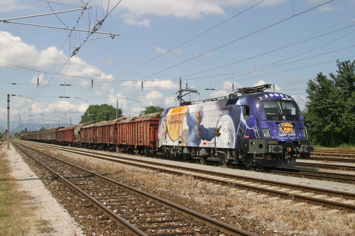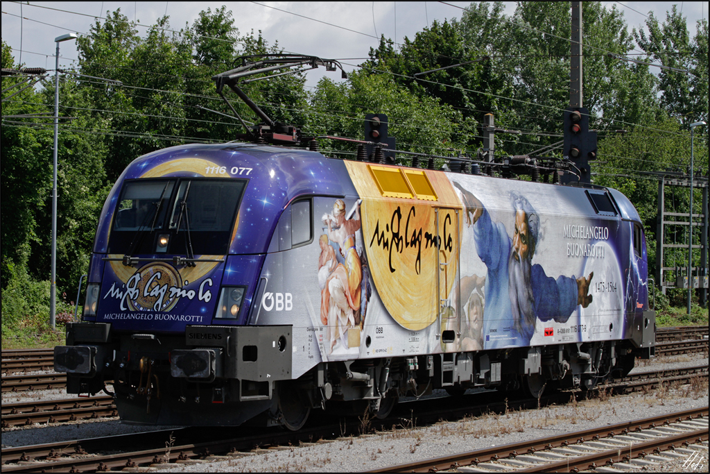 Die neue Werbelok 1116.077 Michelangelo/Galileo mit G-45314 in Ebenfurth am 12.7.14