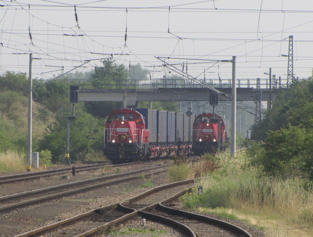 Am 11.07.2014 passierte die DB 261 065-7 mit dem EK 55201 von Kölleda nach Erfurt Gbf die auf die Fahrt in den Anschluss der Firma Lange & Co GmbH wartende 261 093-9 und grüßte freundlich.