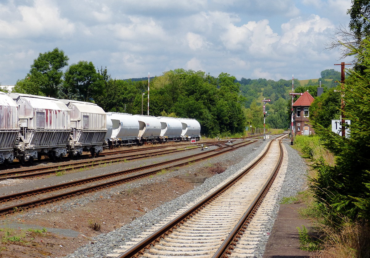 Blick von der Bahnsteigkante in Niedersachswerfen Richtung Ellrich an KBS 357 Nordhausen - Northeim (Han.) Hier mal ein Fotovergleich 24 Jahre vorher: http://br232.com/index.php?nav=1000055&lang=1&file=lts_422_53&action=image&position=2