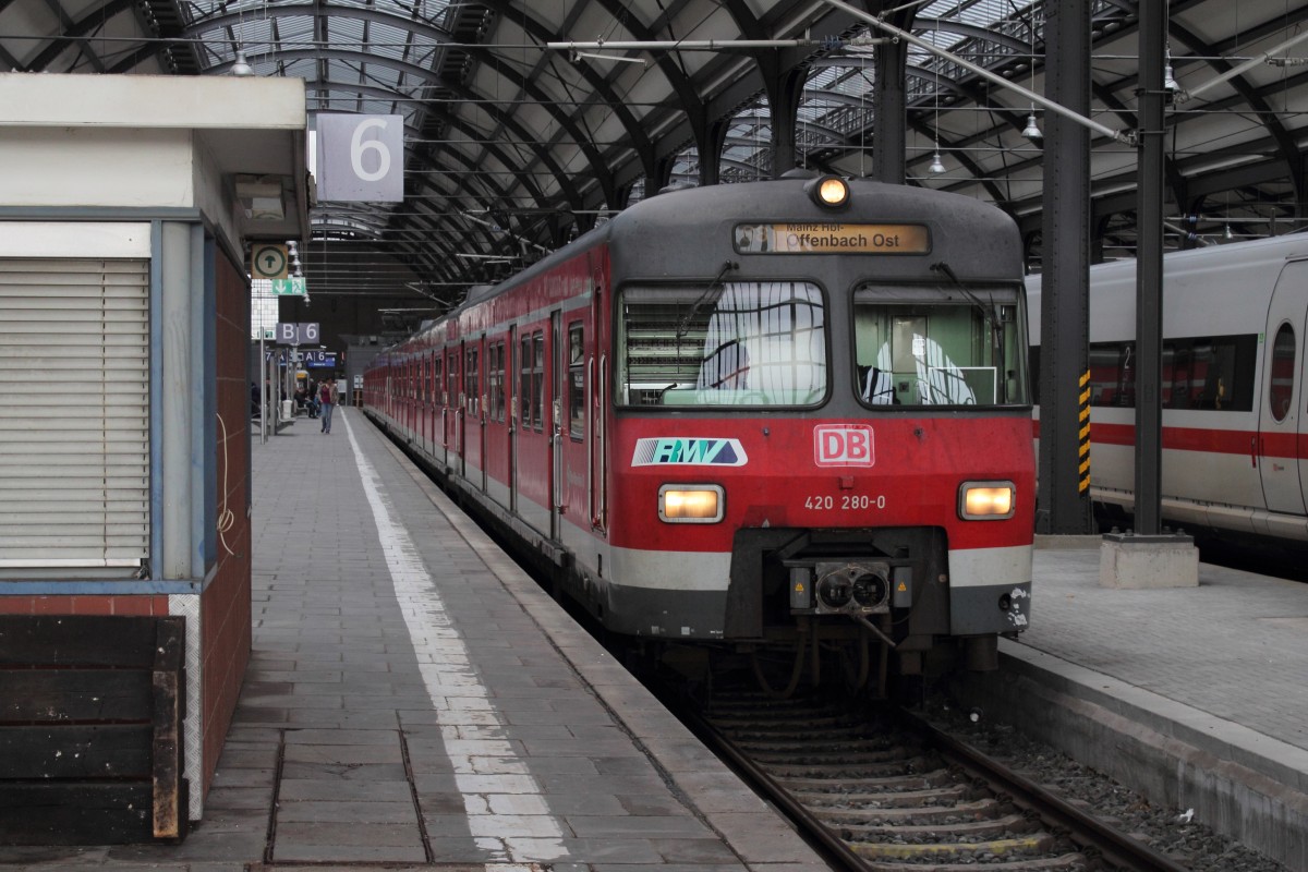 BR 420 280-0 warte auf seine Abfahrtszeit am Wiesbadener Hauptbahnhof.
