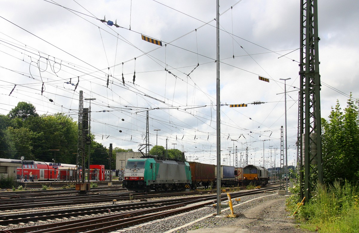 Die Cobra 2836 fährt mit einem langen Containerzug aus Gallarate(I) nach Zeebrugge(B) bei der Ausfahrt aus Aachen-West und fährt in Richtung Montzen/Belgien.