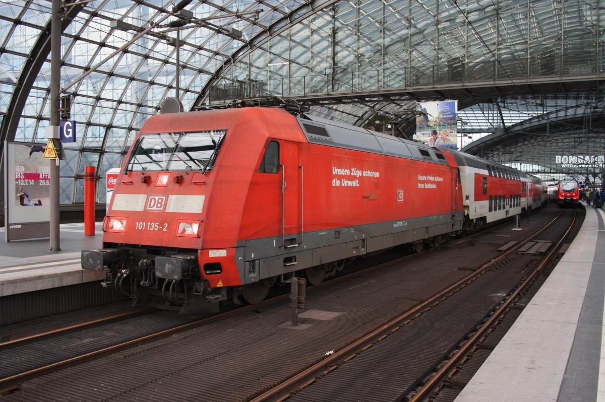 Hier 101 135-2 mit CNL1246 von München Ost nach Berlin Lichtenberg, dieser Zug stand am 28.6.2014 in Berlin Hbf.