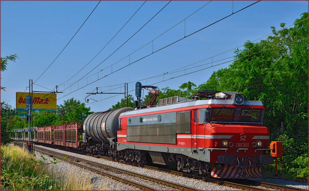 SŽ 363-011 zieht Güterzug durch Maribor-Tabor Richtung Norden. /13.6.2014