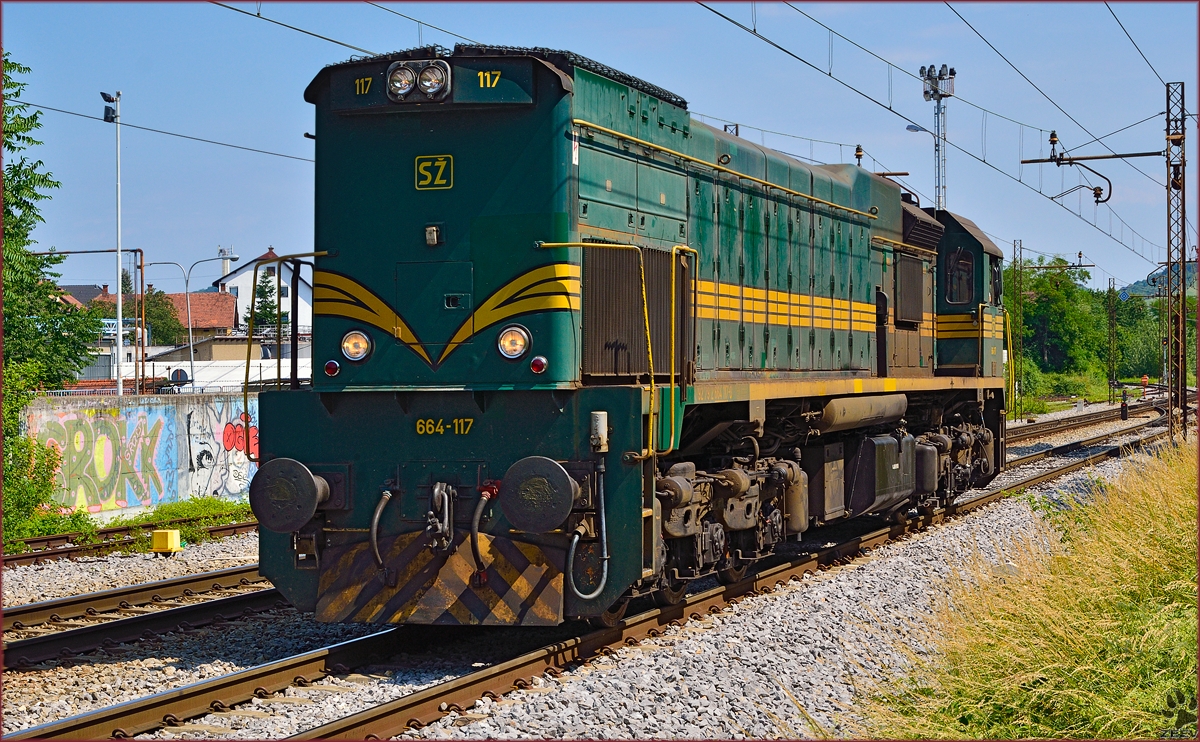 SŽ 664-117 fährt als Lokzug durch Maribor-Tabor Richtung Tezno Verschiebebahnhof. /13.6.2014