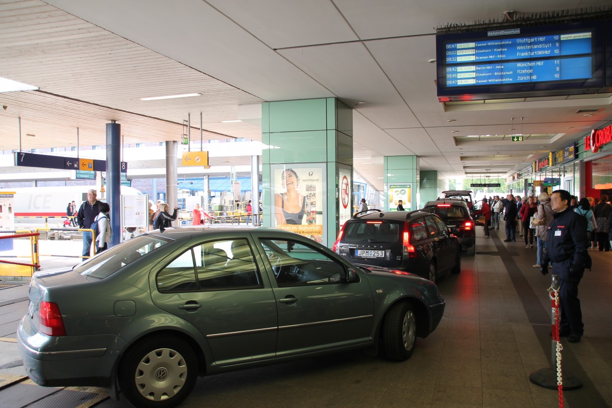 Statt Reisenden stauen sich am 1.7.14 die gerade aus dem Autozug abgeladenen Fahrzeuge im Bahnhof.