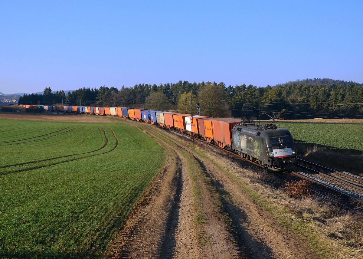 182 527 mit einem Containerzug am 13.03.2014 bei Dettenhofen.