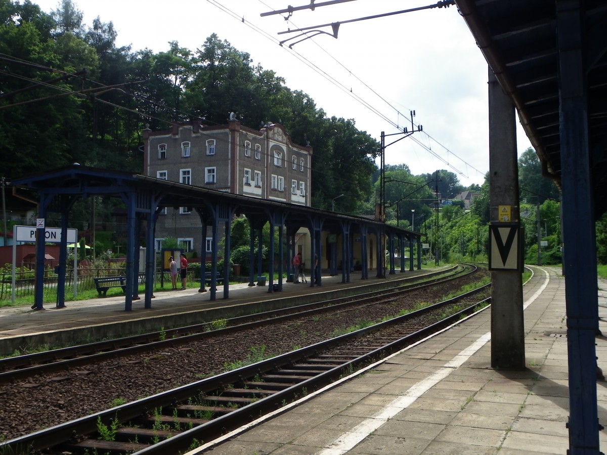 Blick über den ehem. Grenzbahnhof Probstzella, am linken Bildrand steht ein Güterzug der noch auf eine Überholung wartet. 11.07.2014