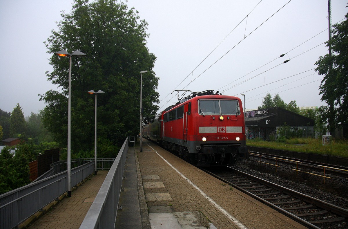111 147-5 DB kommt die Kohlscheider-Rampe hoch aus Richtung Neuss,Herzogenrath mit einem RE4 aus Dortmund-Hbf-Aachen-Hbf und fährt durch Kohlscheid in Richtung Richterich,Laurensberg,Aachen-West.