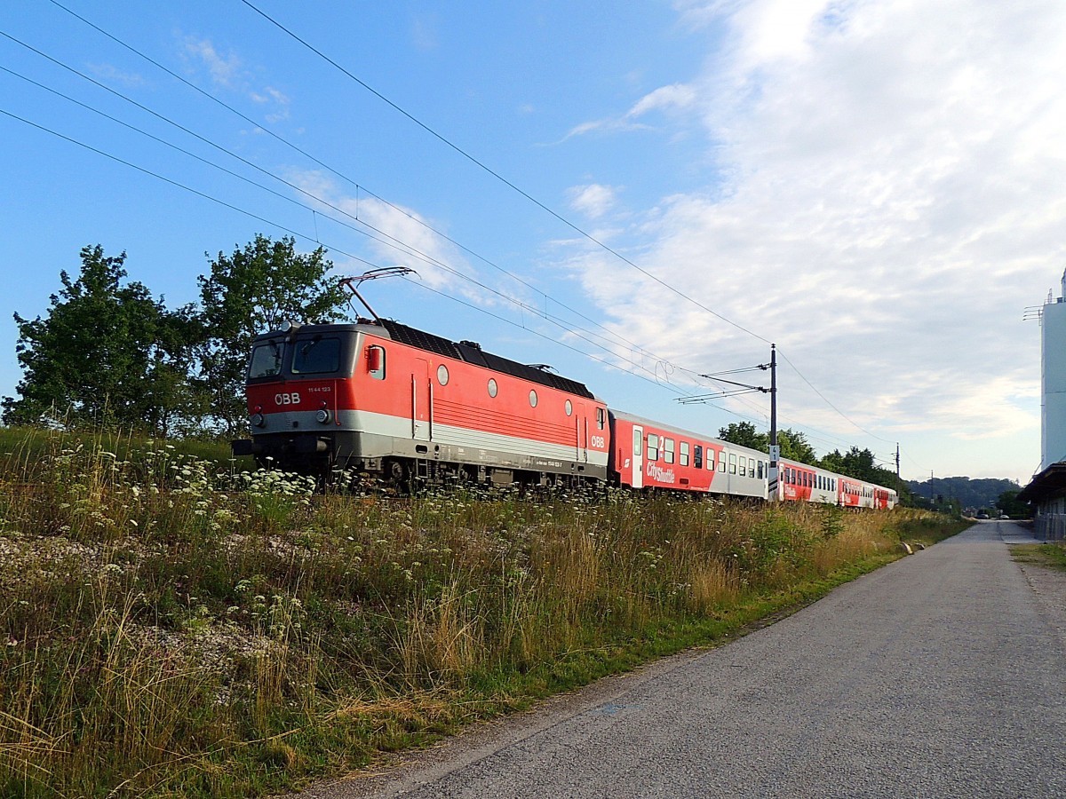 1144 123-7 schiebt R3703 bei Greinsfurth zum Endbahnhof Amstetten; 140715