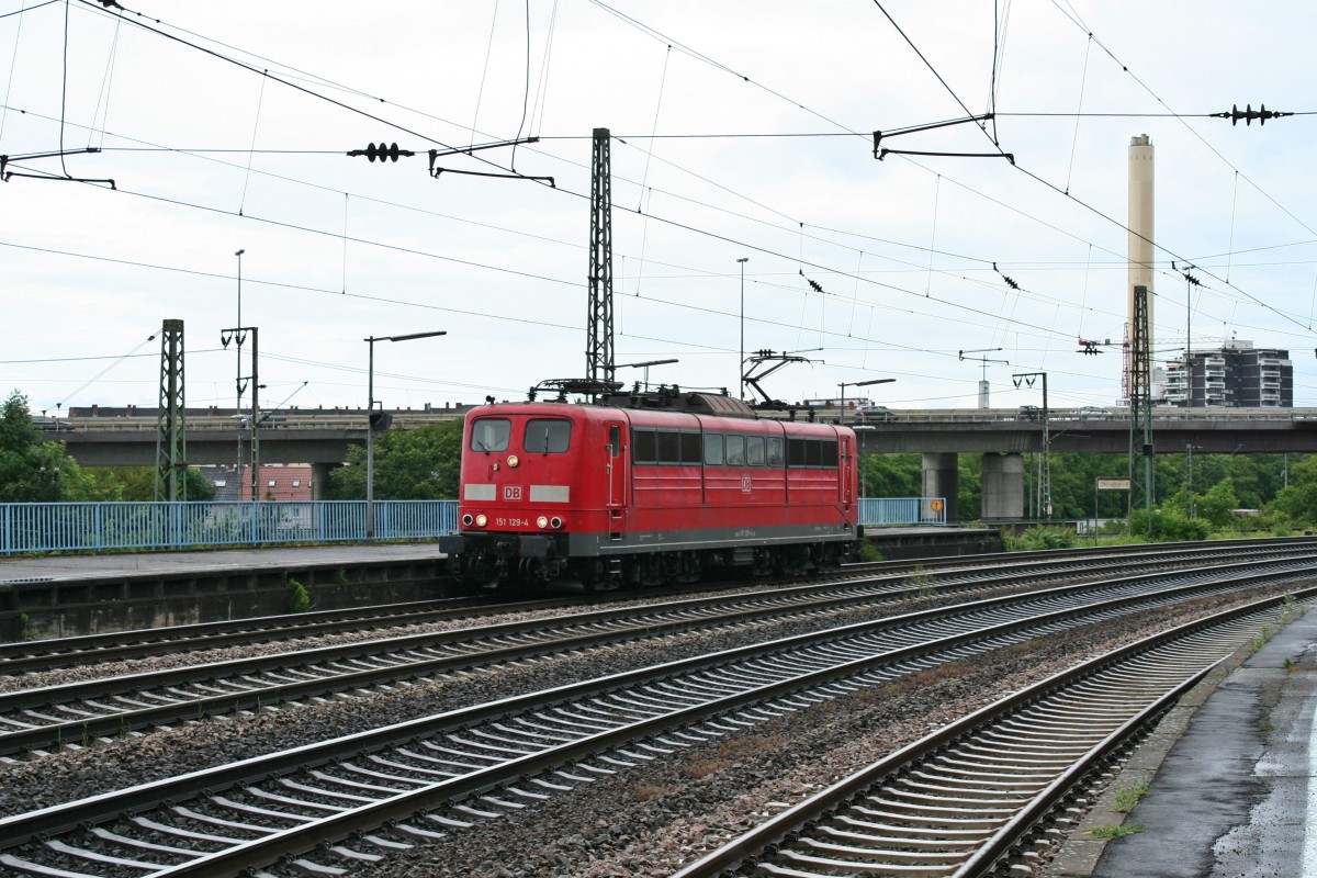 151 129-4 durchfährt am Vormittag des 24.05.14 auf dem Weg nach Mannheim Rbf den Bahnhof Ludwigshafen (Rhein).