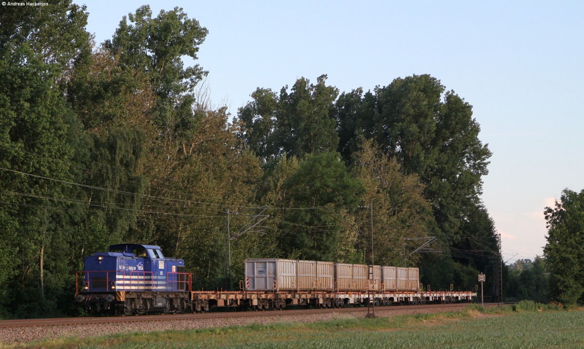 185 404 der TX Logistik fuhr mit einem Zug des kombinierten Verkehrs am 02.07.14 durch Tostedt gen Rotenburg.