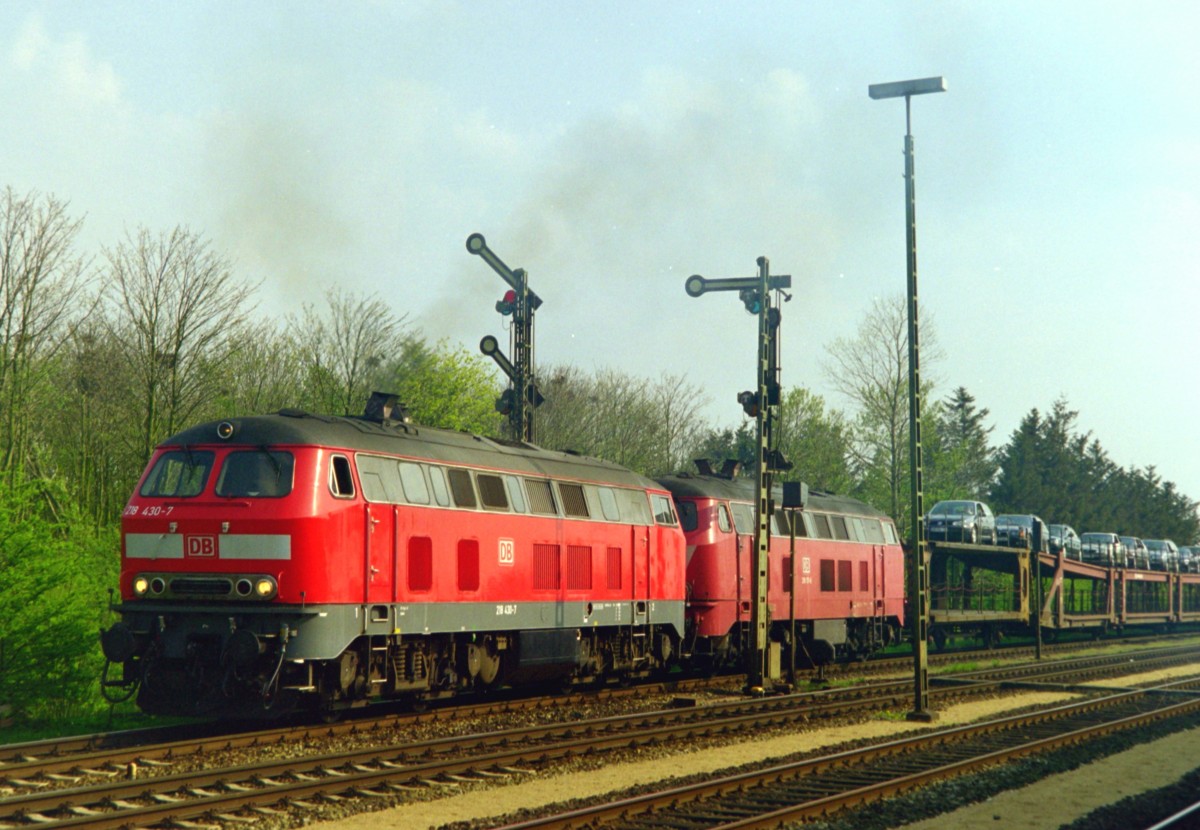 218 430 mit Autozug nach Westerland am 29.04.2000 in Niebüll