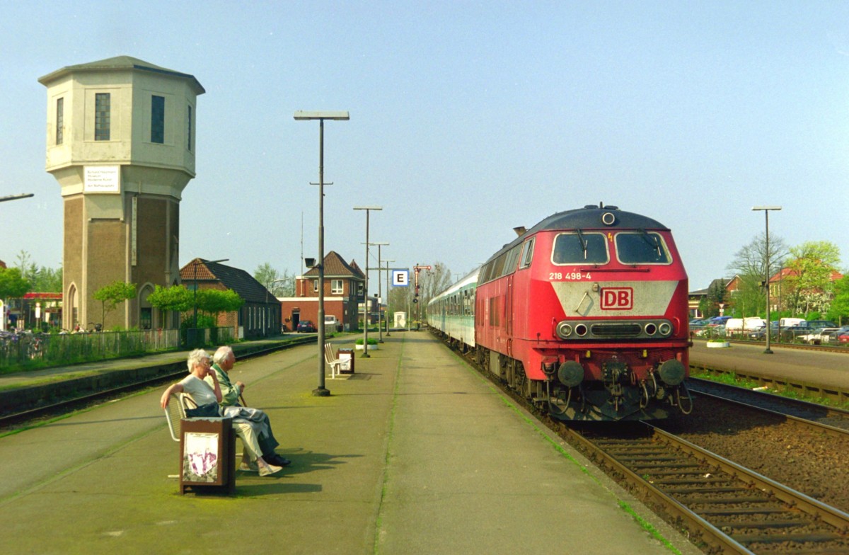 218 498 mit RE 35015 (Westerland–Altona) am 29.04.2000 in Niebüll