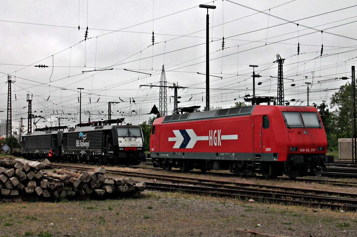 Am 02.05.2014 standen im nördlichen Bahnhofsbereich in Basel die HGK 2001 (145-CL 011) mit der ERS Railways ES 64 F4-208 und der ES 64 F4-201 von Freightiner PL. und warten auf ihre nächste Leistung.