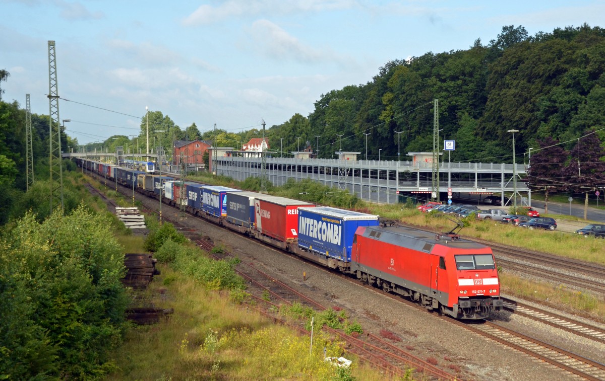 Am 02.07.14 rollte 152 071 mit einem Zug des kombinierten Verkehrs durch Tostedt gen Hamburg.