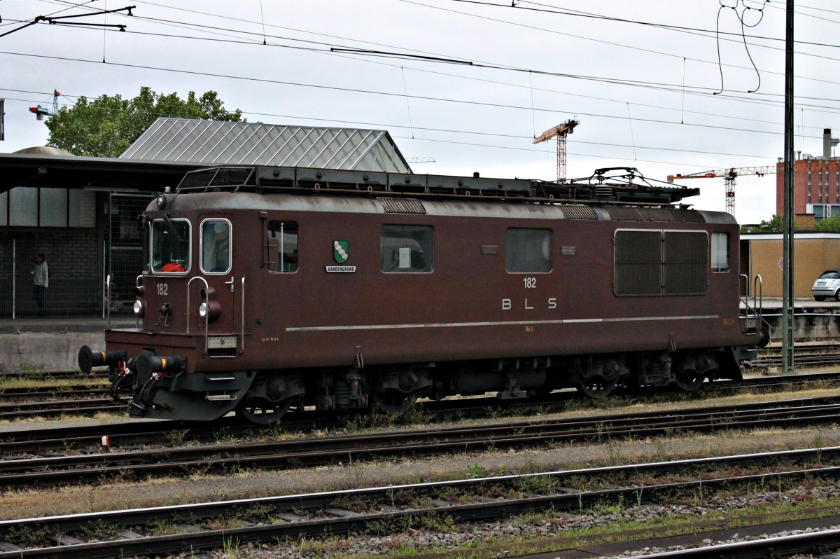 Am Morgen des 02.05.2014 stand Re 425 182 "Kandergrund" von BLS Cargo auf einem angemieteten Abstellgleis in Basel Bad Bf und wartet auf ihren nächsten Einsatz.