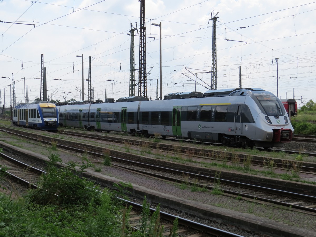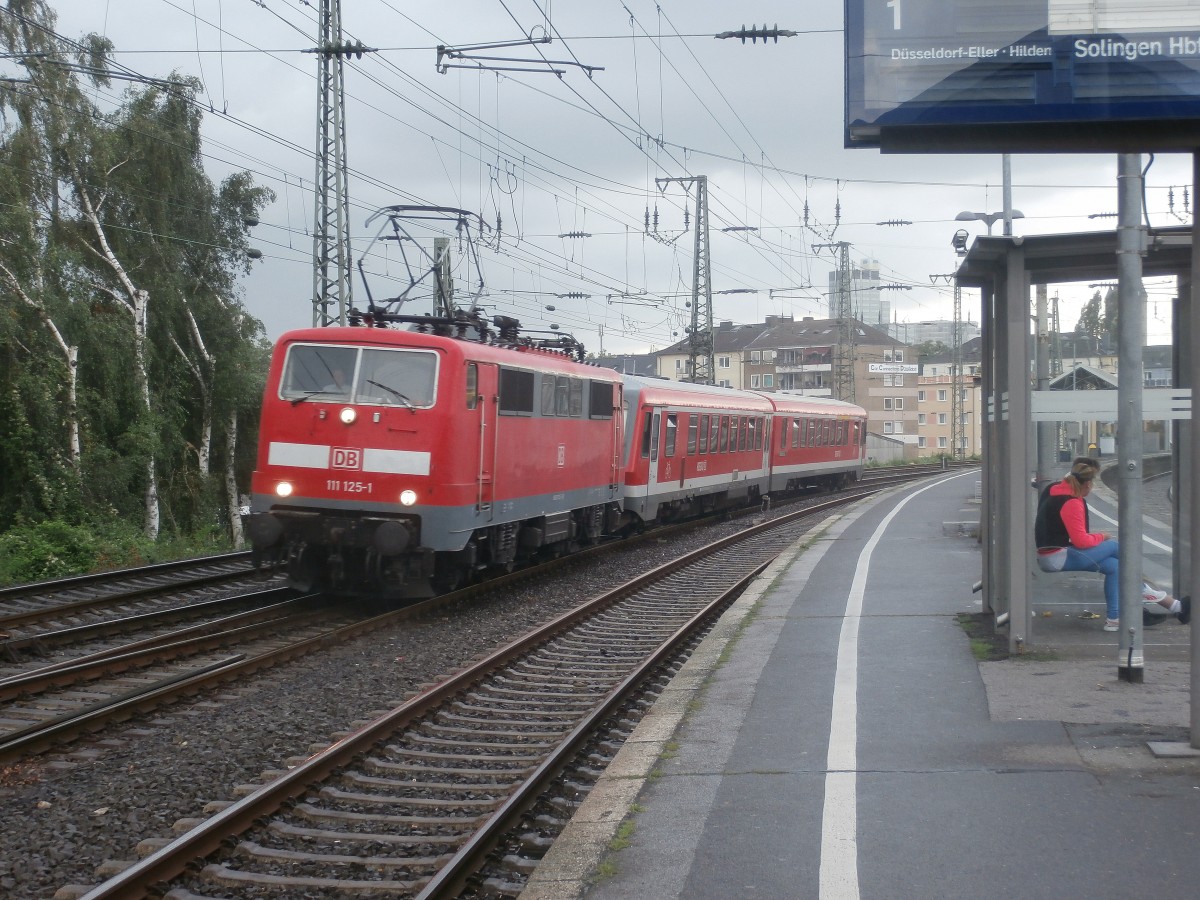 Der Retter in der Not war am 13.07.14 die 111 125-1 für den 628 669. Er war am 13.7 als RB37 alias Entenfänger in Duisburg unterwegs. Hier wird er während eines Schauers ins Betriebswerk Düsseldorf Eller Süd zur Reperatur gezogen.