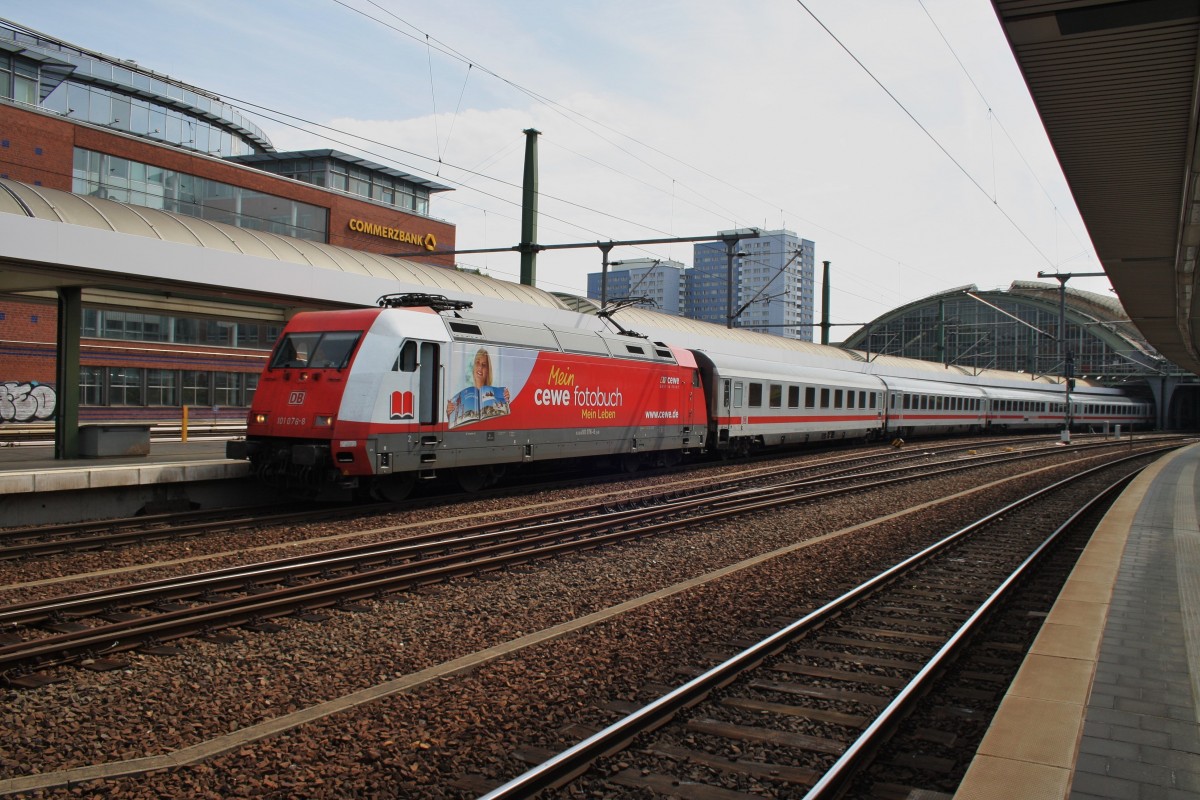 Hier 101 076-8 mit IC146 von Berlin Ostbahnhof nach Amsterdam Centraal, bei der Ausfahrt am 28.6.2014 aus Berlin Ostbahnhof.