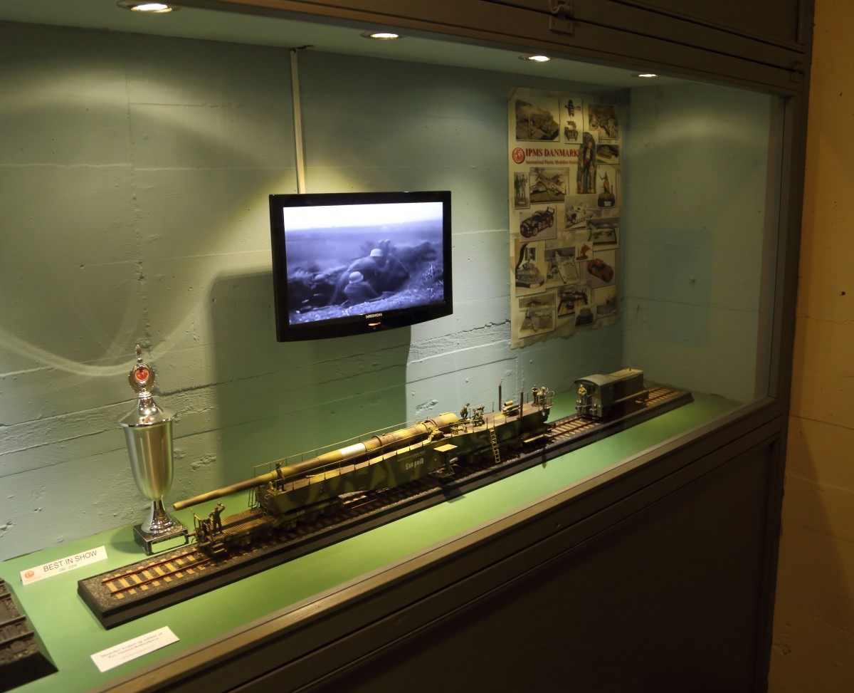 Modell des Eisenbahngeschützes "Leopold", ausgestellt als Exponat im dänischen Bunkermuseum Hanstholm.