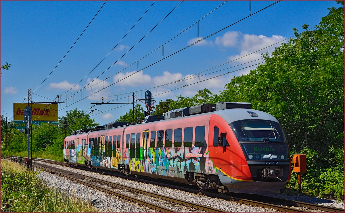 SŽ 312-131 fährt durch Maribor-Tabor Richtung Mariboe Hauptbahnhof. /6.6.2014