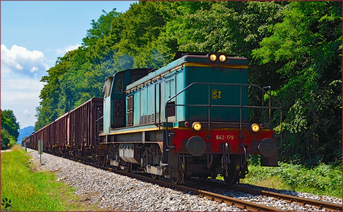 SŽ 642-179 zieht Güterzug durch Maribor-Studenci Richtung Tezno Verschiebebahnhof. /15.7.2014
