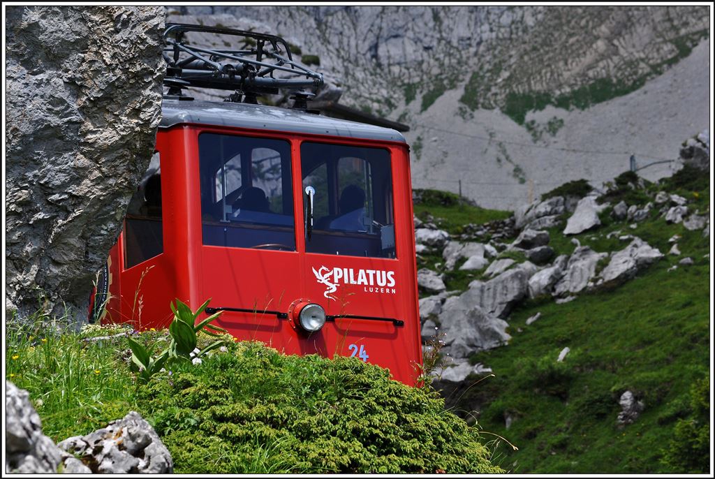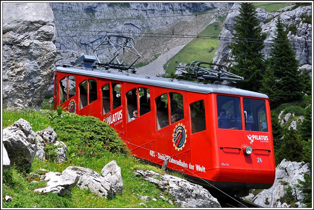 Wagen 24 auf Bergfahrt oberhalb Aemsigen mit Blick hinunter zum Sarnersee. (03.07.2014)