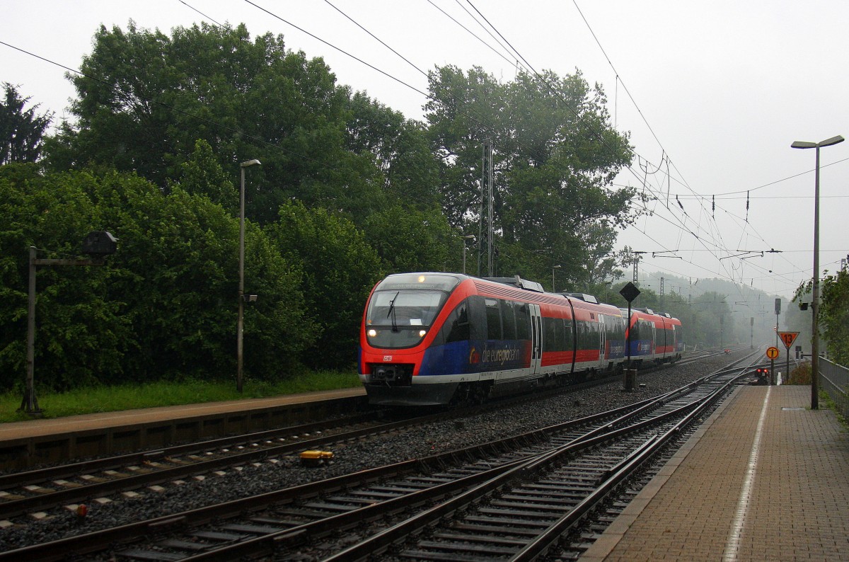 Zwei Euregiobahn (RB20) kommt aus Richtung Aachen-West,Laurensberg,Richterich und fährt durch Kohlscheid und fährt in Richtung Herzogenrath.