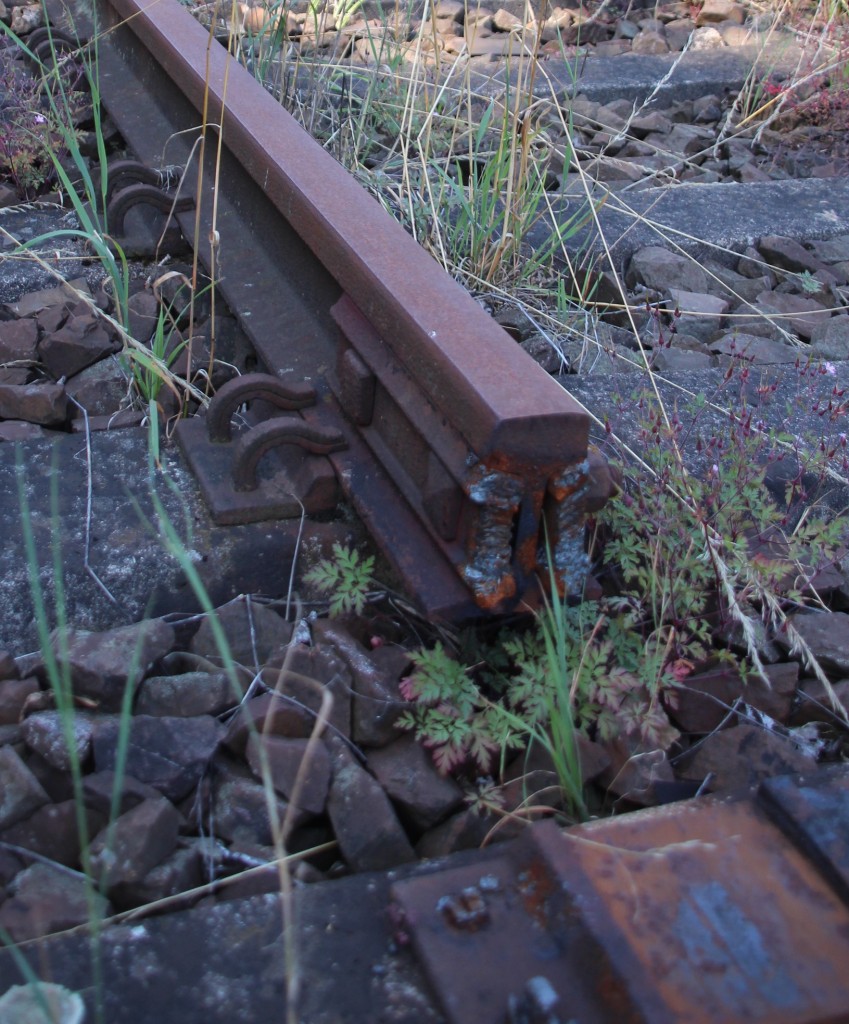 22.7.2014 Bernau. Demontiertes Anschlussgleis mit Schienenbefestigung älteren Typs