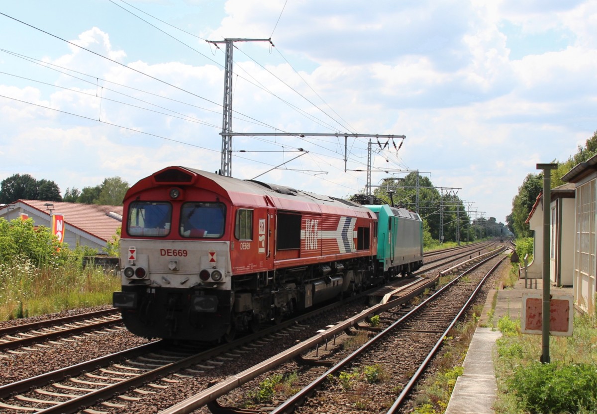 22.7.2014 Zepernick. HGK DE 669 gezogen von 185 575 Richtung Karower Kreuz