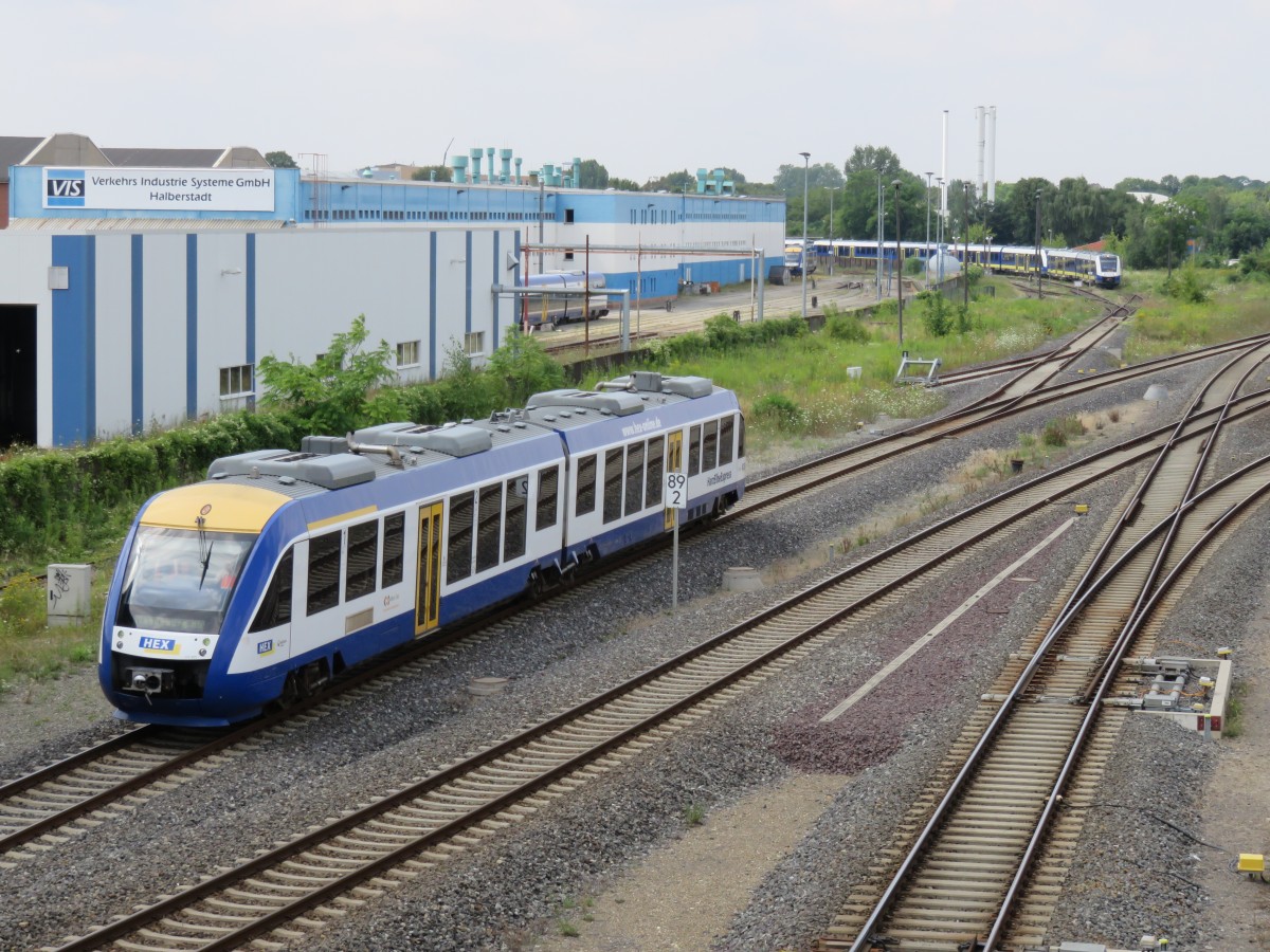Lint 41 des Hex aus Vienenburg bei der Einfahrt in Halberstadt am 22.07.2014 im Hintergrund die Anlagen der Vis GmbH Halberstadt